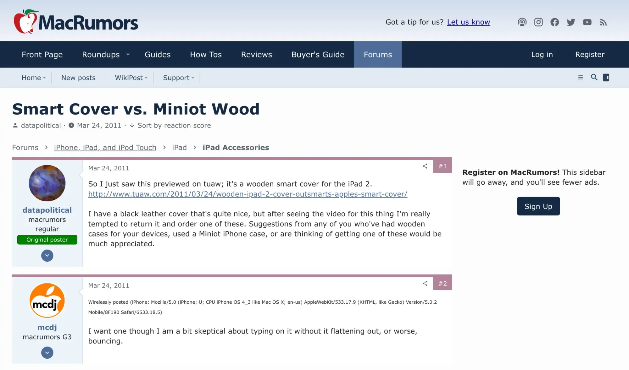 That link “tuaw[.]com/2011/03/24/wooden-ipad-2-cover-outsmarts-apples-smart-cover/” redirects to “tuaw[.]com/ipad/accessories/”.