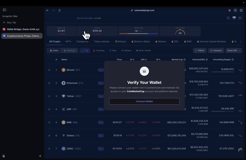 On June 20, 2025, users visiting CoinMarketCap’s homepage began seeing unexpected popups. These popups, designed to mimic CoinMarketCap’s branding, urged users to “verify their wallets” to “maintain full access” to the platform.