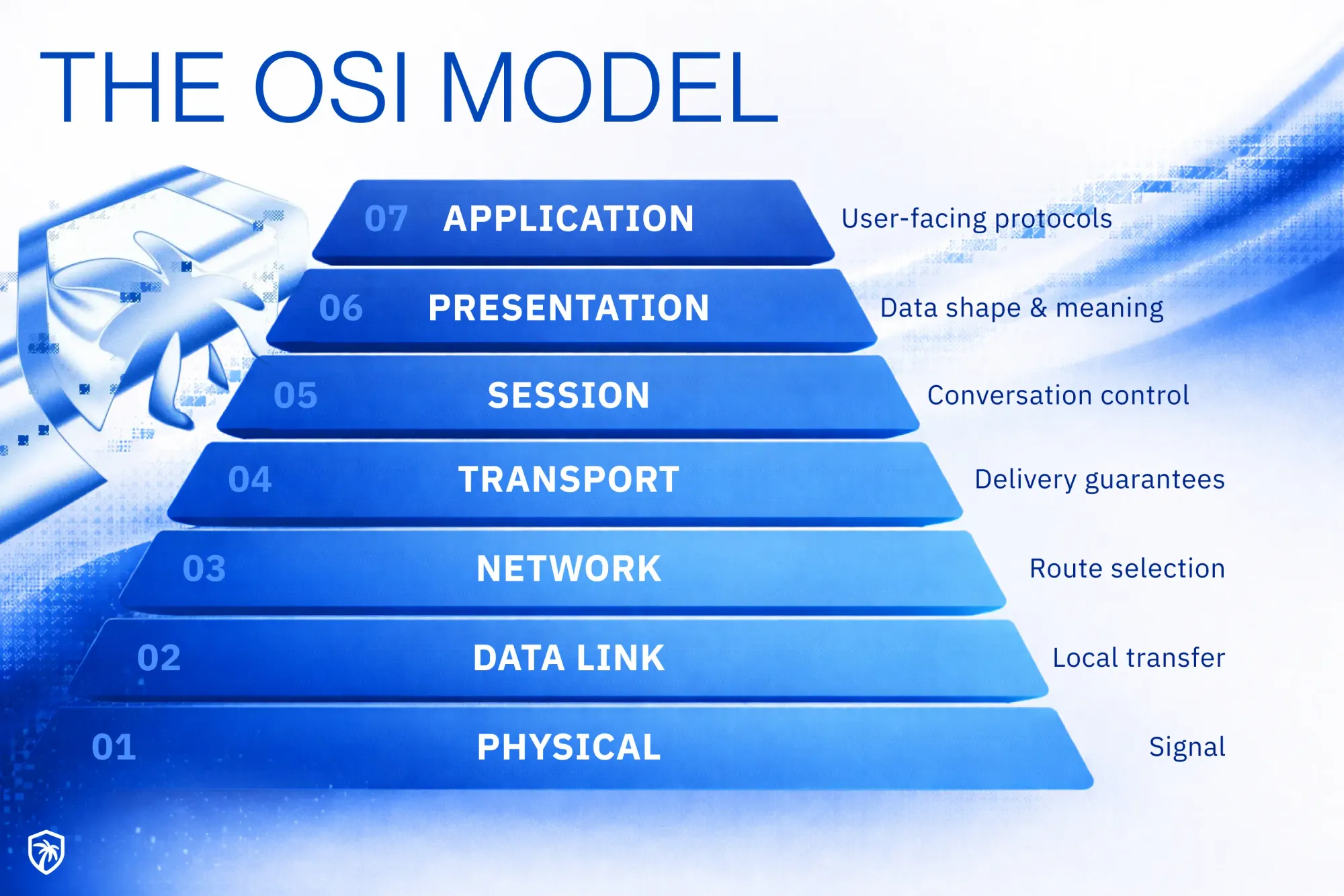Technical readers may be aware of the OSI stack. There are 7 layers of a network application in the OSI stack.