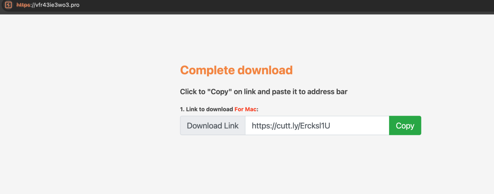 The page appears like a URL shortener and asks the user to copy a link. The attackers are abusing cutt[.]ly, a legitimate URL shortener.