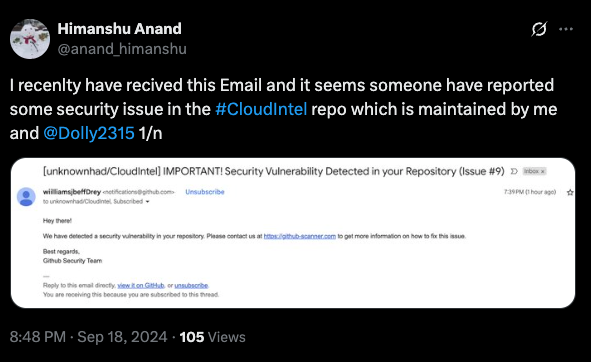 A ClickFix attack is a form of targeted social engineering or client-side attack that exploits a user’s instinct to “just fix the issue.” It typically starts with a convincing message that points to a supposed problem (like a security vulnerability or repo issue). The user is urged to click a link or run a command, believing they're resolving something important.