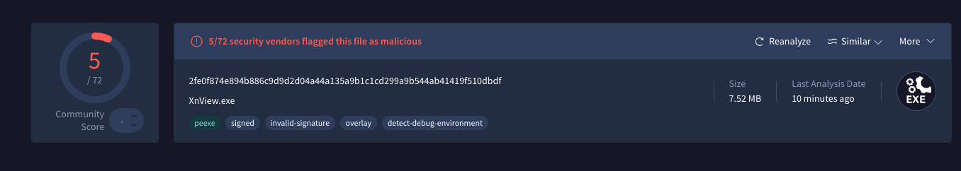 Detected by 5 vendors on VirusTotal.