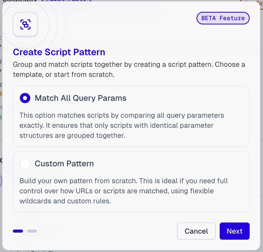 We have released a feature that allows you to match patterns in dynamic scripts urls to lessen the amount of repetitive scripts that you see. This allows you to maintain a clean and less cluttered dashboard, while still ensuring that each individual script goes through full security analysis.